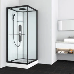 Douchecabine Allibert Loft-Game 90x90x200 Cm 8mm Gelakt Aluminium Industrieel Zwart Transparant