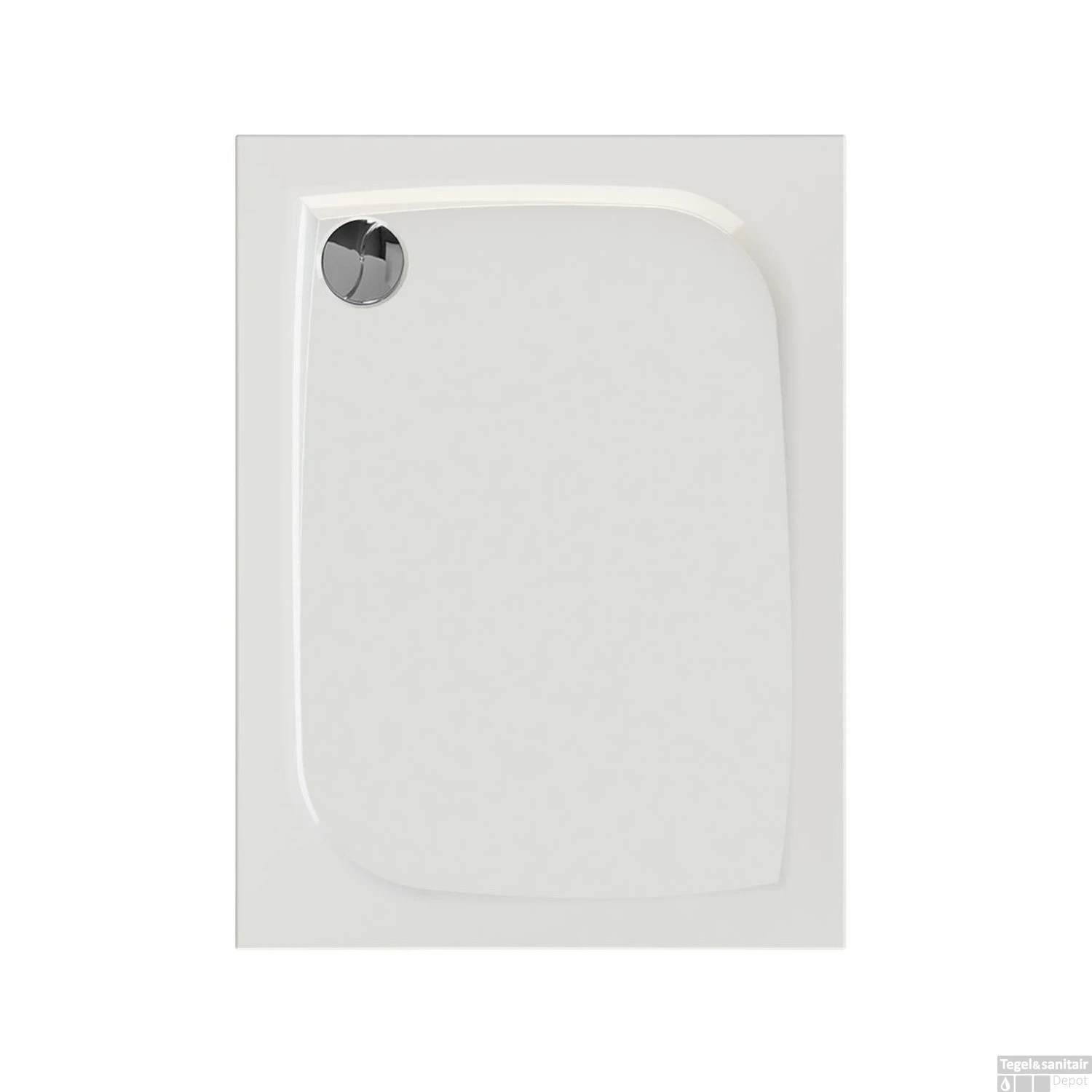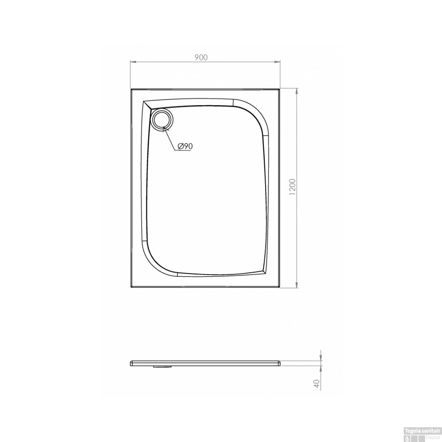 De rechthoekige douchebak heeft een breedte van 120 cm, een diepte van 90 cm en een hoogte van 4 cm. Onderaan de webpagina kunt u ervoor kiezen om een bijpassende douchebakafvoer van het merk Allibert aan de bestelling toe te voegen. Deze douchebakafvoeren zijn leverbaar in een chrome, witte en extra platte variant voor een meerprijs.