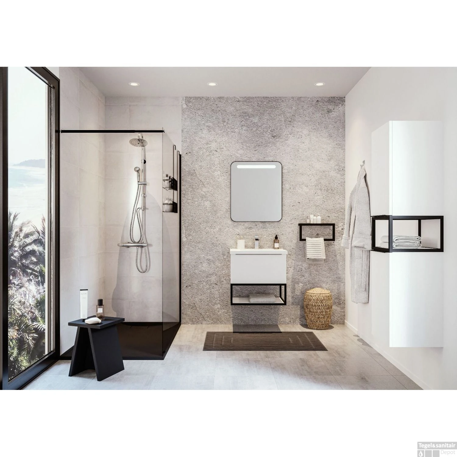 De Walk-In Douchewand uit de Lago-serie van Allibert geeft je badkamer een stijlvolle uitstraling. De wand is gemaakt van 8 mm dikke veiligheidsglas en is voorzien van een antikalk behandeling langs 1 zijde, waardoor de douche kalkvrij te houden is. De zwarte versterkingsstang is maximaal 120 cm en in te korten naar wens. De stang is geïntegreerd in het glas voor optimale stabiliteit. Bovendien is de wand omkeerbaar en zijn de profielen afgewerkt in zwart aluminium.